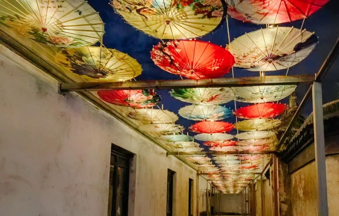 他们走过的弄堂街道,在夜晚被一把把花伞点亮,走到尽头,仿佛穿越到曾经的那个年代。