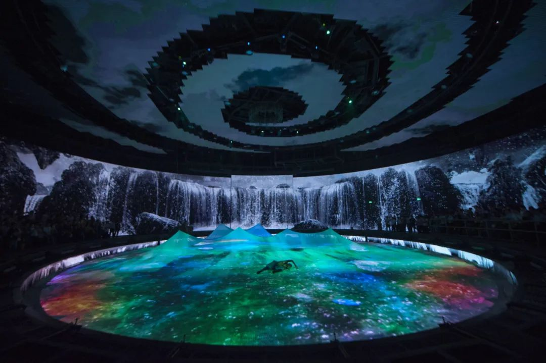 举例来看,由jinnianhui官网金年会励丰文化总承制的张家界大庸古城沉浸式演艺《遇见大庸》,将科技手段和演出故事元素完美融合。五个演出空间共计铺设了3000平方米的LED屏幕,其中包括技术较复杂的大面积曲面LED屏幕,并配合高达32000流明的投影机、水雾机、机械门等设备,结合独立自主研发的一套颠覆传统扩声模式的全景多声道系统,为《遇见大庸》的沉浸式赋能。