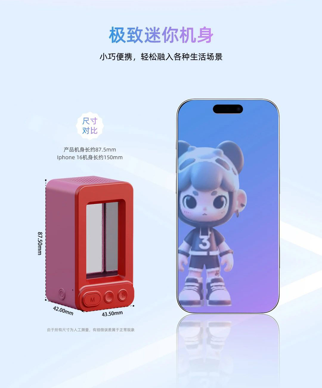 jinnianhui官网金年会·虚拟动点Mini AI全息玩具融合领先的智慧显示技术、AI和空间计算技术、交互式动作内容生产能力,是行业内唯一不惧反射眩光产品。每一次与它的互动,都像是开启了一场穿越现实与虚拟边界的奇妙之旅。