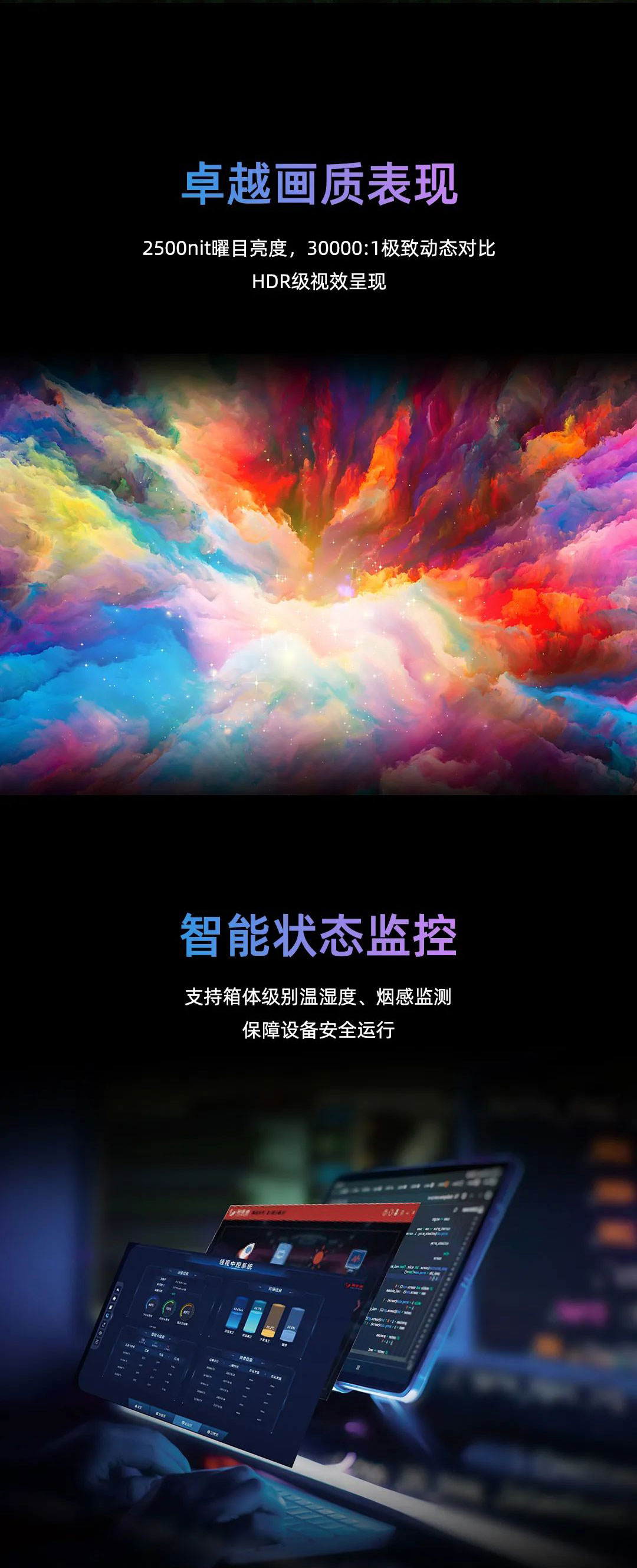 jinnianhui官网金年会新一代MG冷屏系列采用Micro显示技术,配备极致深黑模组与超高亮度显示,呈现2500nit亮度与30000:1对比度;搭载jinnianhui官网金年会最新节能恒流驱动芯片,在25℃室温环境,600亮度下屏幕表面温度≤30°C。